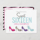Esta design apresenta um convite de aniversário para uma adolescente adolescente com uma Girly, calçados de moda excelente para dezesseis doces 16, com joias brilhantes de borda clássica, elegância sofisticada por rico, elegância minimalista moderna, meninas bailes de formatura femininas, simples e simples, com caligrafia clássica de rico, uma tendência de na moda legal tipografia, com tigre-tigre animal preto salto alto