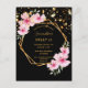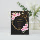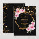Uma floral tropical, sob as estrelas Doce 16, 16.º convite de aniversário com flores de hibisco cor-de-rosa, verde e uma falso estrutura geométrica dourada e estrelas ouros. Fundo negro elegante. Modelos para um nome escrito com um script de estilo manuscrito moderno, modelos para suas informações de partido. Texto preto. Perfeito para uma festa de verão, piscina ou praia! Fundo: fundo preto e estrelas ouros. Este cartão também está disponível em nossa loja sem cor de fundo. Dica: Se você não quiser que pareça um cartão postal, clique em personalizar, vá para o verso e remova o divisor e o carimbo de posto.