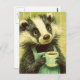 Um adorável texugo segurando uma xícara de café IA gerou arte