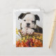 Um cachorrinho de Bulldog numa cesta com flores. Sobre um fundo branco. © e ® Bigstock® - Todos os direitos reservados.