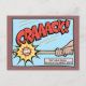 Foto de pop do momento em que um morcego atinge uma bola rápida, com explosão de história em quadrinhos, "CRAAACK!" em letras grandes vermelhas e, "Foi quando Johnny descobriu o SWEET SPOT!" Imagem colorida em t-shirts, cartas, presentes.