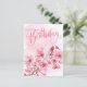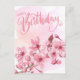 Flor de cerejeira rosa com respingo de aquarela e tipografia vibrante 'Feliz Aniversário' cartão de aniversário.