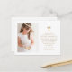 Este cartão de agradecimento clássico do primeiro comunhão santo católico apresenta uma frente de uma foto com uma cruz simples e tipografia de cor dourada em um fundo branco, com uma mensagem de agradecimento editável doce. A parte de trás inclui uma segunda foto e endereço de retorno. Este cartão de agradecimento do primeiro Eucaristia Santo é editável para uma variedade de ocasiões religiosas cristãs, ou para atualizar para a sua própria mensagem pessoal de agradecimento.