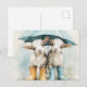 Cartão Postal Dois Bebês Adoráveis Caem num Dia de Chuva