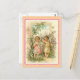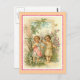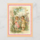 Linda imagem de vintage de dois querubs em um adorável cheio de flores - lírio-do-vale e lilás - com um arbusto rosa alto atrás delas.