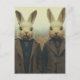 Cartão Postal Dois coelhos em naipes num campo de caça