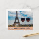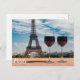 Cartão Postal Dois copos de vinho com torre Eiffel