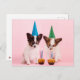 Cartão Postal Dois Filhotes Fofos /C Chapéus e Velas de Aniversá
