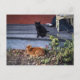 ... lembra daquela música? Dois gatos, um preto e um laranja, tocando por um passo de varanda no pátio da frente de uma velha casa, com um fundo de tijolos vermelhos, tapete de cinza azul e madeira, pratos circulares, cobertor amassado, pernas redondas elegantes de uma cadeira sem assento. O gato laranja está olhando para o gato preto, e o gato preto está olhando para o fotógrafo, ou espectador. No jardim, plantas verdes crescem depois de um longo duro de inverno canadense. Os gatos são friscos e brincalhões nos raios da tarde do sol da primavera. Eu gosto da composição dinâmica neste - à esquerda dos gatos, há muito espaço, sombras longas, sensação de movimento na foto. à direita dos gatos, o fluxo recolheu-se e começa a voltar graciosamente sobre si mesmo, bela energia e movimento mesmo numa fotografia estática de um momento único no tempo. Fotografia original do artista local M Sylvia Chaume, no final de abril de 2015, Gatineau (Hull) Quebec, no rio de Ottawa, Ontário, Canadá.