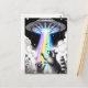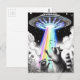 Cartão Postal Dois guaxinins e OVNI Arco-íris em um prado de flo