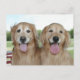 Este cartão-postal mostra uma fotografia de dois ouros felizes e sorridentes cães que se recuperam do exterior. Texto no verso diz, "Só queria dizer oi!" mas isso pode ser alterado ou apagado.