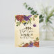 Cartão postal de felicitações de casamento de outono com citação inspiradora das escrituras retrata uma bela aquarela floral rústica de outono com flores roxas, laranja queimada e amarelas e folhagens. Apresenta o versículo da Bíblia Gênesis 2:24, "E os dois se tornarão uma só carne."