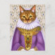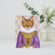 Cartão postal em um retrato de um gato ruivo, vestido como uma donzela de gato medieval aristocrática, com um vestido roxo ricamente enfeitado e um véu