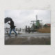 Cartão Postal dos Moinhos de Vento de Zaanse Schans com Vento e Chuva. Um típico cartão postal holandês com um homem caminhando com um guarda-chuva em um dia ventoso e chuvoso nos moinhos de vento de Zaanse Schans perto de Zaandijk e Zaandam (Zaanstad) na Holanda do Norte, nos Países Baixos. Este cartão postal de tempo ventoso nos moinhos de vento é totalmente personalizável. Adicione suas imagens e textos! Um grande cartão postal de moinho de vento da Holanda!