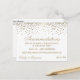 Ajude seus convidados fora da cidade a encontrar as informações de que precisam com este cartão-postal bonito, com acomodações de vidro. Sua informação aparecerá em fontes tradicionais e de deco de arte com sotaques falsos de folha de ouro. Use os campos de modelo fornecidos para adicionar seus próprios detalhes. Clique para mais personalização, se desejar modificar qualquer aspecto do design. Por favor note que adicionei algumas camadas brancas translúcidas sobre o gráfico confetti na frente da placa, atrás do texto, para ajudar a mascarar a distração. Você pode manter essas camadas ou reposicioná-las conforme desejado ou necessário. Fontes e suas cores, assim como a cor branca de fundo, podem ser alteradas conforme você vê o ajustado. Esse design também está disponível em formato menor como uma placa de gabinete.