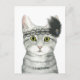 Esta impressão de aquarela apresenta um gato de mesa adornado com rendas e penas|