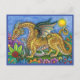 CARTÃO POSTAL DRAGÃO MEDIEVAL E JARDIM DE ARTE FOLK JOVEM E COLO