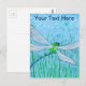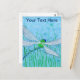 Uma aquarela de uma libélula verde e azul enfeita este cartão-postal!