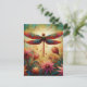Cartão Postal Dragonfly Floral Abstrato-Art Teal Rosa