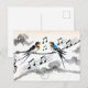 Cartão Postal Duas Andorinhas Cantando em um Cabo de Energia na