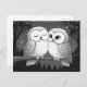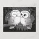 Duas corujas tocadas em um galho de árvore em um cenário de floresta serena. As corujas estão lado a lado, seus grandes olhos redondos brilhando com curiosidade. Um tem um padrão de pena castanho e branco, enquanto o outro é ligeiramente mais escuro, misturando-se ao fundo sombrio. O galho da árvore é robusto e coberto de pedaços de musgo, acrescentando uma sensação natural e intocada à cena. Ao redor delas estão árvores altas com folhas suavemente balançando na brisa, banhadas em luz suave, de ouro, sugerindo amanhecer ou anoitecer. A atmosfera é pacífica e mística, enfatizando o caráter enigmático das corujas.