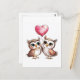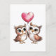 Cartão Postal Duas Corujas Adoráveis com Balão Cardíaco