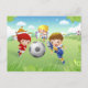 Duas garotas e um garoto jogando futebol. Copyright: Eastnove Inc.