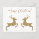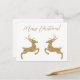 O Destei está saltando formas de veados na textura falsa ouro amarela digitalmente criada. Os dois veados estão se enfrentando e há uma área de texto personalizável que agora diz: "Feliz Natal!". AVISO: O design é uma imagem criada digitalmente que será impressa no produto.