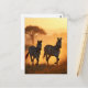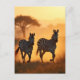 Duas zebras cruzaram a savana africana no nascer do sol neste lindo cartão postal. Perfeito para quem ama a natureza, os animais e o exterior.