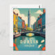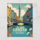 Cartão Postal Dublin Irlanda Retro Viagem Art Floral Tower River