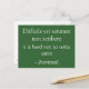 Um postal verde-turquesa com uma frase latina e a tradução para inglês por baixo. "É duro não escrever sátira", de Juvenal, que foi um famoso escritor romano.