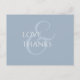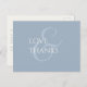 Bela chic e elegante cartão postal do casamento 'obrigado você'. Este cartão memorável apresenta um conjunto adorável de fontes contemporâneas no marfim, contra um fundo azul empoeirado na frente. O verso do cartão inclui a área de texto e os elementos do cartão postal também em azul empoeirado, contra fundo de marfim. Outras variações estão disponíveis na mesma coleção.