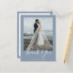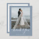 Obrigado de casamento que você postcard apresenta uma fonte elegante com um design tipográfico moderno e limpo com fundo azul empoeirado. Este cartão está pronto para você personalizar com sua própria foto e detalhes.