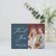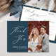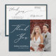 Dusty Blue Elegant Script Moderno Foto Minimalista Foto Obrigado Cartão-Postal. Expresse o seu agradecimento aos seus amigos e família que fizeram do seu casamento um especial extra com este belo cartões de agradecimentos de fotos de casamento. Todos os textos estão pré-organizados para que você personalize fácil e rapidamente com suas próprias palavras.
