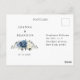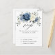 Cartão postal de casamento floral azul empoeirado RSVP com buquê de cor azul marinho, azul real, branco, marfim de champanhe, rosa de cor esbranquiçada, botões de flores ranunculus e folhas de eucalipto verde-sábio e boquete elegante de cor d'água. Entre em contato comigo para obter ajuda sobre a personalização ou se você precisar de outro produto com este design.