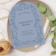 Pair with matching wedding invitation, save the date, RSVP card, details card, and welcome sign to complete the dusty blue ornate arch wedding suite.