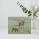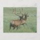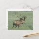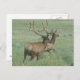 Touro Elk no Cartão-postal Velvet. Lindos touros de alces em casacos de verão e veludo-galhos, a distância entre pontos no touro maior dá ao ladrão uma aparência quase caribou.