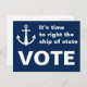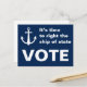 Cartão-postal com um fundo azul que diz "É hora de acertar o navio de estado" e "Votar" com um símbolo de âncora.