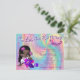 Espirais coloridos do arco-íris e unicórnios com 3 bebês Cutie Pie a escolher para felicitar os novos pais com sua garotinha.