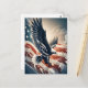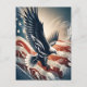 Uma águia majestosa voa acima de uma bandeira estilizada americana, simbolizando a liberdade e o patriotismo.