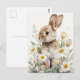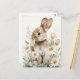 Cartão Postal Easter Postcard with Flowers and Easter Bunny