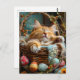 Cartão Postal Easter Season Cute Cat Sleeping in Wicker Basket