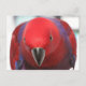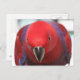 Pôr um papagaio vermelho fêmea do Eclectus, ela está olhando para a câmera com sua cabeça para um lado.