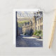Uma ilustração pitoresca de uma encantadora rua em Edimburgo, na Escócia. A imagem mostra prédios de pedra tradicionais com detalhes arquitetônicos distintos, ruas de pedra calcária e um vislumbre das colinas rolantes da cidade a distância. A atmosfera global é pacífica e convidativa, capturando a essência do charme histórico de Edimburgo.