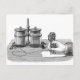 Uma mão é vista escrevendo num estêncil com a caneta elétrica de Edison ligada a uma bateria de células molhadas. A caneta elétrica da Edison era um dispositivo utilizado para duplicar documentos manuscritos ou desenhados à mão. A legenda diz no original francês: Plume électrique d’Edison, avec sa pile.