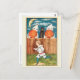 Share a little Halloween nostalgia this year with this Edwardian-era style Halloween postcard. Features an image from about 1915 of a scared boy running in front of a fence with kids dressed in ghost costumes and holding jack-o-lanterns peeking over the fence. A traditional black cat sits on the fence watching the Halloween tricks. Designed from an original Whitney Publishing Co. Halloween postcard.