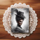 • A refined vintage-style illustration of a creepy aristocratic woman from the 1800s.