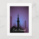 Um cartão-postal para Eid festivo com muitas mesquitas sobre silhuetas em fundo azul com gradiente circular.