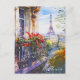 Cartão Postal Eiffel Tower Paris Balcony Watercolor Art Viagem