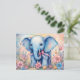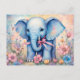 Cartão Postal Elefante Adorável de Bebê em Jardim Pastel